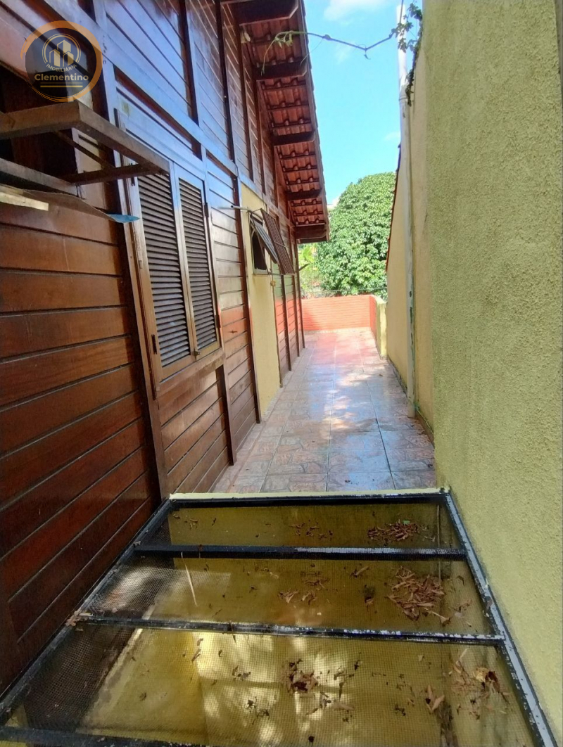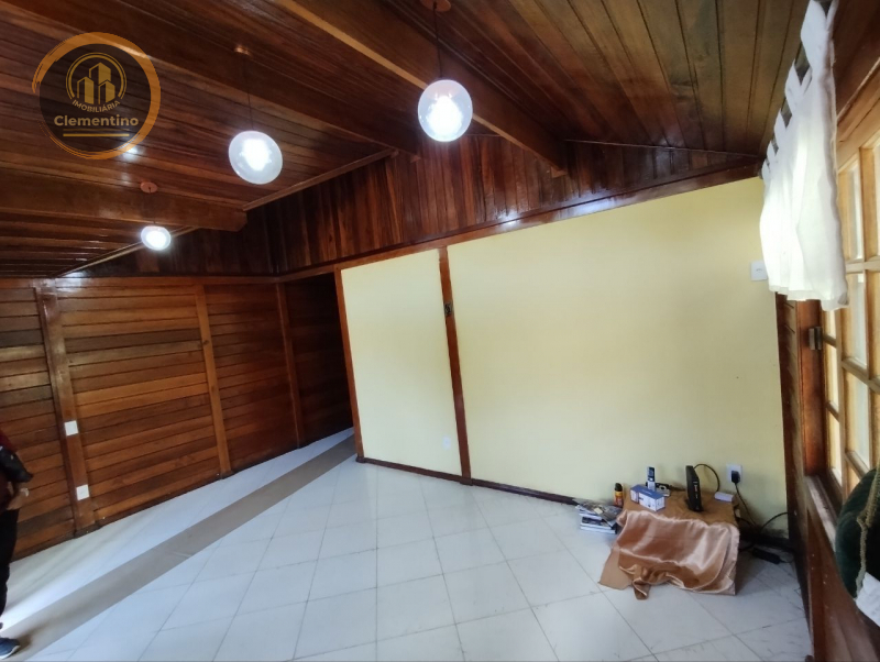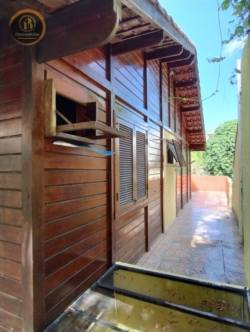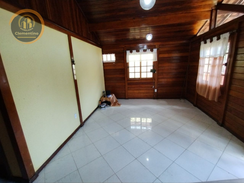 2?pavimento- Casa tipo chalé de madeira revestida em verniz, entrada independente, composta por 1 suíte closet, banheiro social, varanda de frente com 2 redes, mas área externa para lazer, cozinha planejada, lavanderia e área de serviço de fundos.