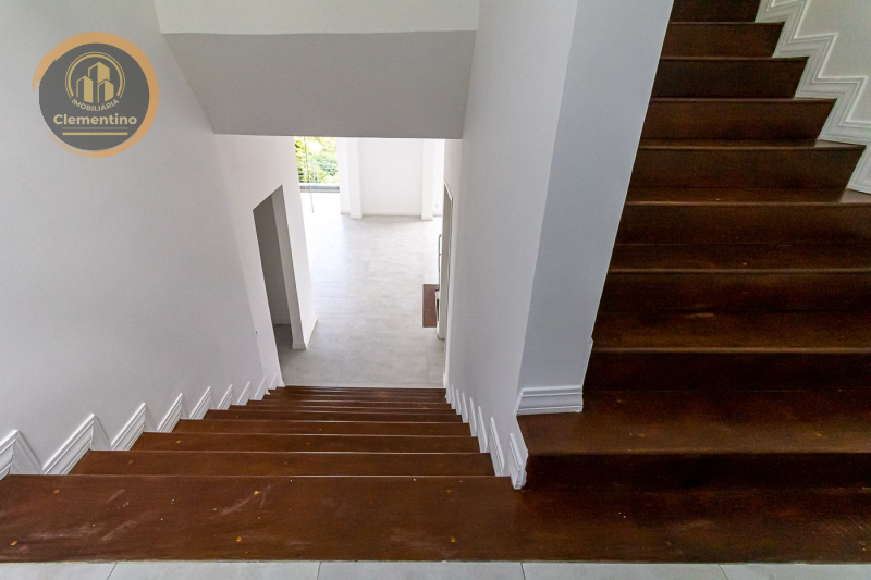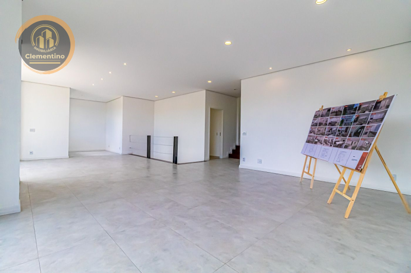2º pavimento: Este pavimento abriga uma sala de jantar e área íntima com 55m², cozinha equipada com armários planejados da Romanzza, copa e despensa. Além disso, um quarto e uma varanda espaçosa com preparação para churrasqueira.