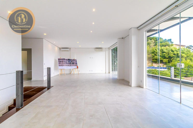 1º pavimento: Com um living espaçoso de mais de 70m² e pé-direito alto com vista para o jardim, este ambiente é perfeito para momentos de convívio. Possui ainda uma área de depósito e lavabo. Na área externa, uma ampla garagem com um banheiro completo.