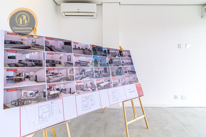 3º pavimento: Aqui, você encontrará quatro suítes, sendo três com closet e a suíte master com 38,5m², hidromassagem e um amplo closet. Todas as suítes têm preparação para instalação de aparelhos de ar-condicionado split.